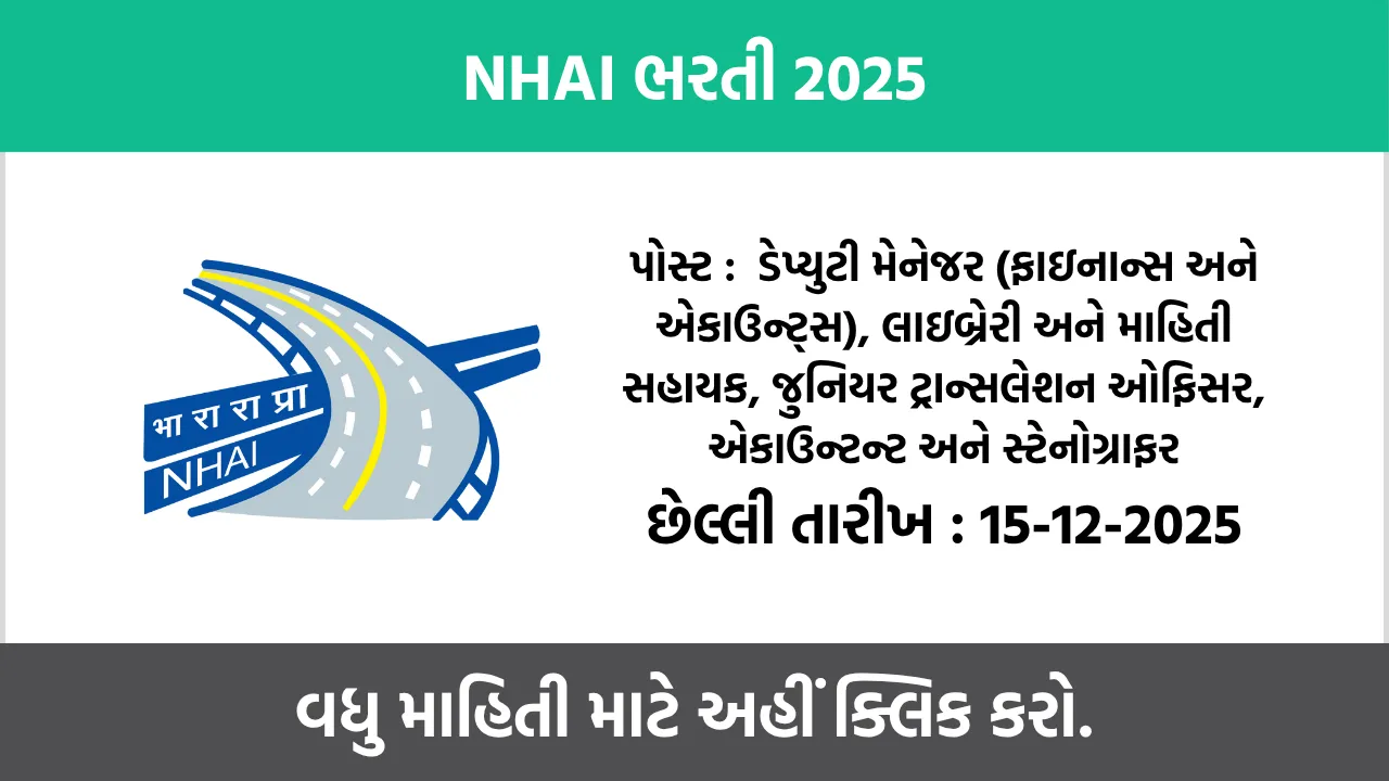 NHAI Recruitment 2025 Detailed NotificationClick Here