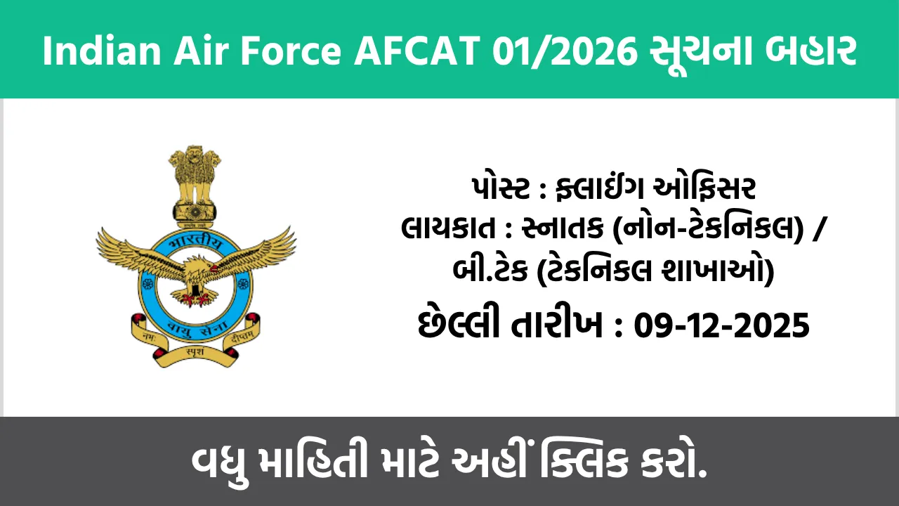 The Indian Air Force (IAF) has officially released the AFCAT 01/2026 Notification inviting online applications for Flying and Ground Duty (Technical and Non-Technical) Branches, including NCC....